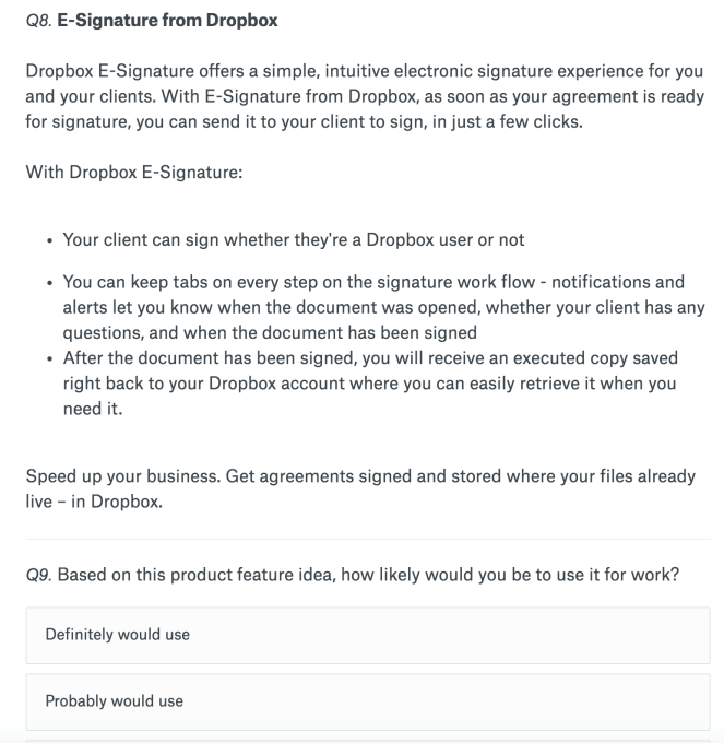 While a survey alone doesn’t confirm the feature is in the works, it does indicate how Dropbox is thinking about its professional product.