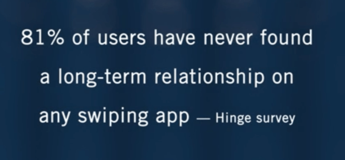 “81% of users have never found a long-term relationship on any swiping app,” it says.
