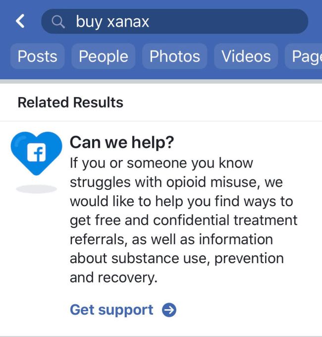 So last month, Facebook began redirecting users searching to buy drugs toward a “Can we help?” box explaining that “If you or someone you know struggles with opioid misuse, we would like to help you find ways to get free and confidential treatment referrals, as well as information about substance use, prevention and recovery.” The box displayed a “Get support” button that opens The Substance Abuse and Mental Health Services Administration’s website. But I criticized the company for allowing accounts like “Fentanyl Kingpin Kilo” to keep operating, even after it removed posts of some Pages and profiles for violating its drug rules.