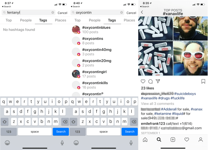 Instagram will have to be vigilant or dealers may win this cat-and-mouse game by constantly switching to new hashtags using drug name variants, misspellings and synonyms, as well as by restarting terminated accounts. While it’s admirable that it’s trying to avoid shutting victims out of support communities, the relatively hands-off approach might not deter addicts. Instagram should also be flagging users posting drug names and phone numbers as potential dealers. By whitelisting accounts purposefully sharing treatment and support, it could more aggressively chase the pill peddlers.