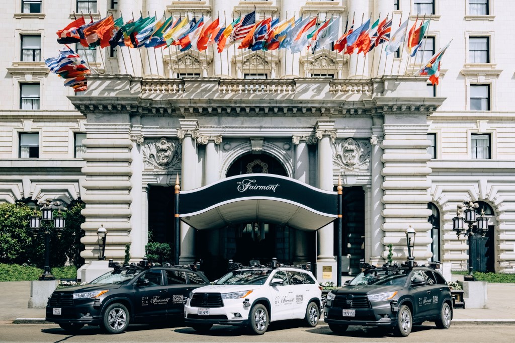 In partnership with the Fairmont hotel in San Francisco, Zoox will transport select summit guests between the Fairmont and Moscone Center in its self-driving Toyota Highlander test cars. Zoox says it’s working with the Fairmont and the Summit to determine guests.