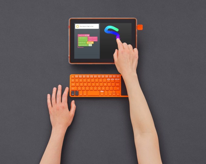 While touch is becoming increasingly central to its products, Kano says the keyboard remains an important component of the product — supporting text-based coding apps which its platform also provides access to, as well as the more approachable drag-and-drop block-based coding systems that do really benefit from having a touchscreen to hand.