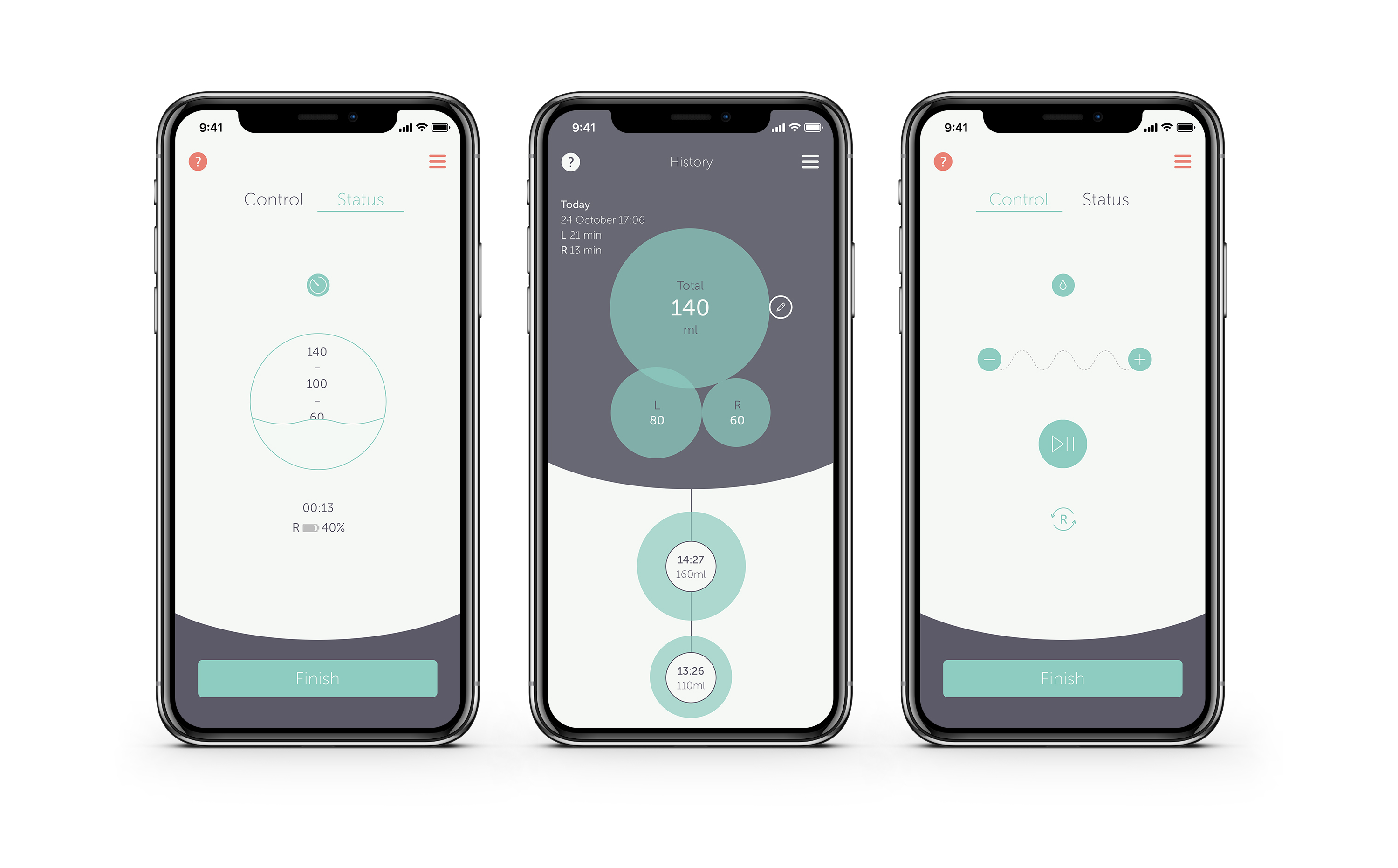 The app connects to each device via Bluetooth and tracks your production, detects let down, will pause when full and is equipped to pump in seven different modes.