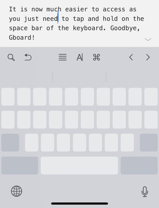 It is now much easier to access as you just needs to tap and hold on the space bar of the keyboard. Goodbye, Gboard!