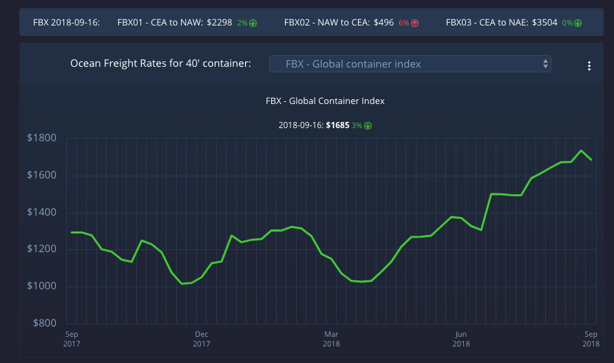 Developed in partnership with the Baltic Exchange, a market information provider for the maritime transportation industry, the FBX tracks freight pricing from 12 major routes around the world and also combines them into one index to serve as the freight industry’s equivalent of the S&P 500.