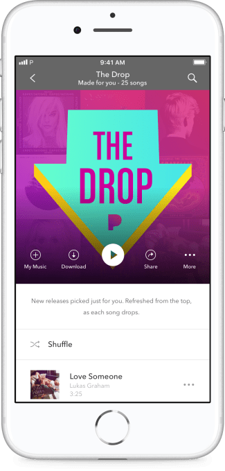 Pandora is taking on Spotify with the launch of a new personalized playlist, The Drop, announced this morning. Similar to Spotify’s Release Radar, The Drop will also focus on new releases from artists its listeners care about. New tracks are added to the playlist on the day they’re released, the company says – that means Fridays, as with Release Radar.