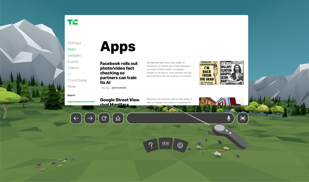 Firefox Reality is a browser built entirely for virtual reality. While you may have read about desktop Firefox or Chrome adding WebVR support, Firefox Reality is a web browser that you actually use entirely inside a VR headset. You can visit URLs, search things and otherwise browse the 2D and 3D internet within the new browser all without moving a mouse, just your VR hand controller.