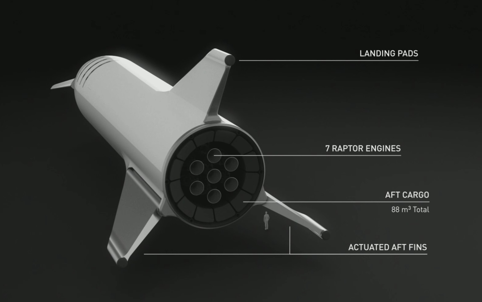 The fin on top of the craft gives it a very Space Shuttle-esque look, and it was natural that most would think that it’s a vertical stabilizer of some kind. But Musk shut that down quickly: “It doesn’t have any aerodynamic purpose — it really is just a leg.” He pointed out that during any atmospheric operations, the fin will be in the lee of the craft and won’t have any real effect.