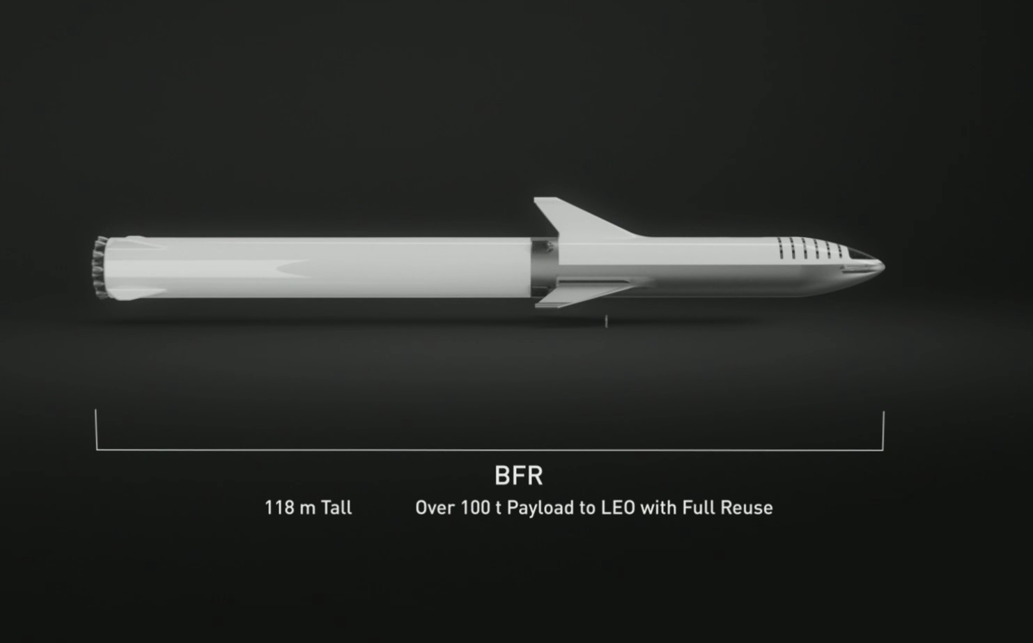 “The production design of BFR is different in some important ways from what I presented about a year ago,” Musk said, including its dimensions. The redesigned spacecraft (or BFS) will be 118 meters in length, or about 387 feet; just under half of that, 55 meters, will be the spacecraft itself. Inside you have about 1,100 cubic meters of payload space. That’s all around 15-20 percent larger than how it was last described. Its max payload is 100 metric tons to low Earth orbit.