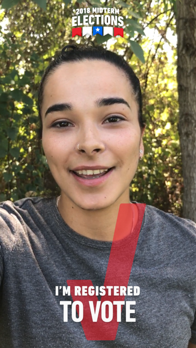 Meanwhile, publishers including Washington Post, NowThis, Mic, Vice, Refinery29, Mitu, Cheddar, and Good Luck America will put swipe-up-to-register options in their relevant election coverage. Snapchat’s own news team of curators will be compiling Our Stories about election issues and voting, and like last year, Snapchat will offer themed creative tools including an “I’m Registered To Vote” filter. They all offer the swipe-up registration option that can be completed inside Snapchat’s app.