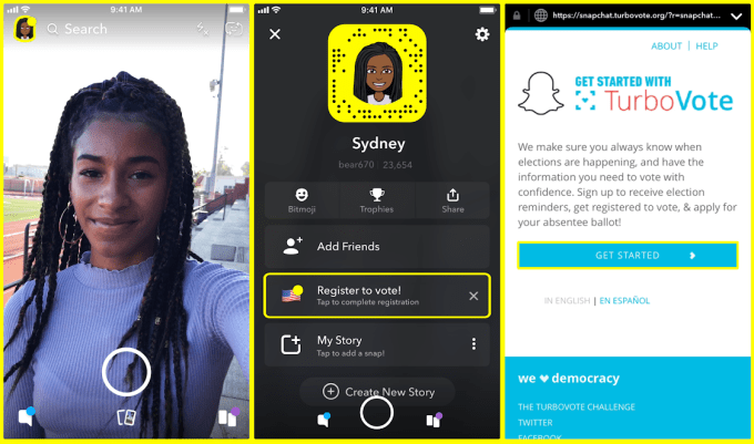 TurboVote has become the defacto partner in this industry-wide initiative, as it also powers registration signups through Facebook and Instagram. While those competitors put a bigger notice atop their apps, they’re then mostly running ads to promote voter registration whereas Snapchat is integrating the initiative organically across its product.
