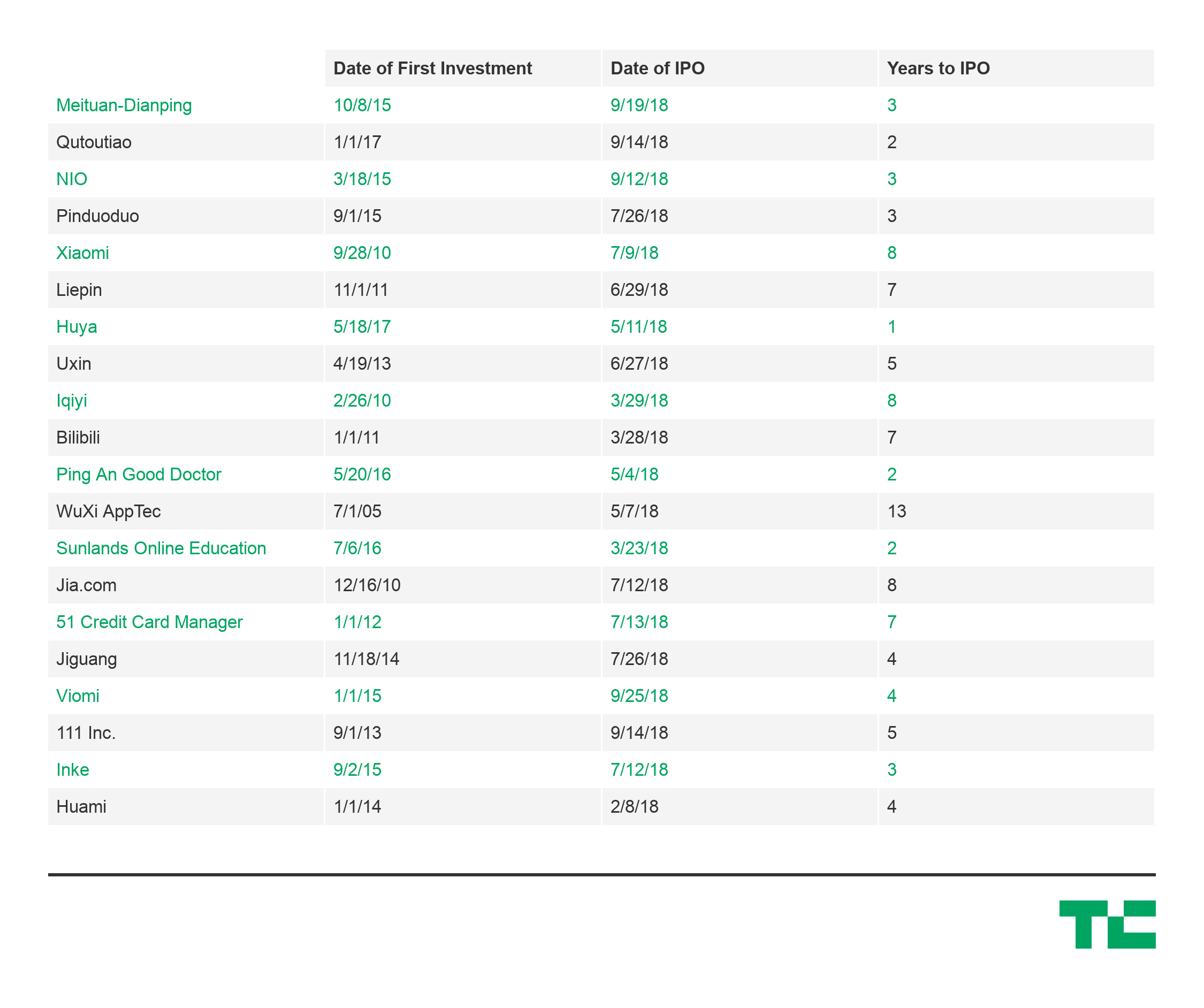 Analyzing twenty of the most high profile Chinese tech IPOs this year, the average time from first venture investment to IPO was only around three to five years. Take e-commerce platform Pinduoduo, which pulled in $1.6 billion less than three years after its Series A. Or the recent IPO of EV-manufacturer NIO, which raised a billion dollars just three-and-a-half years after its Series A and having just delivered its first car in June.