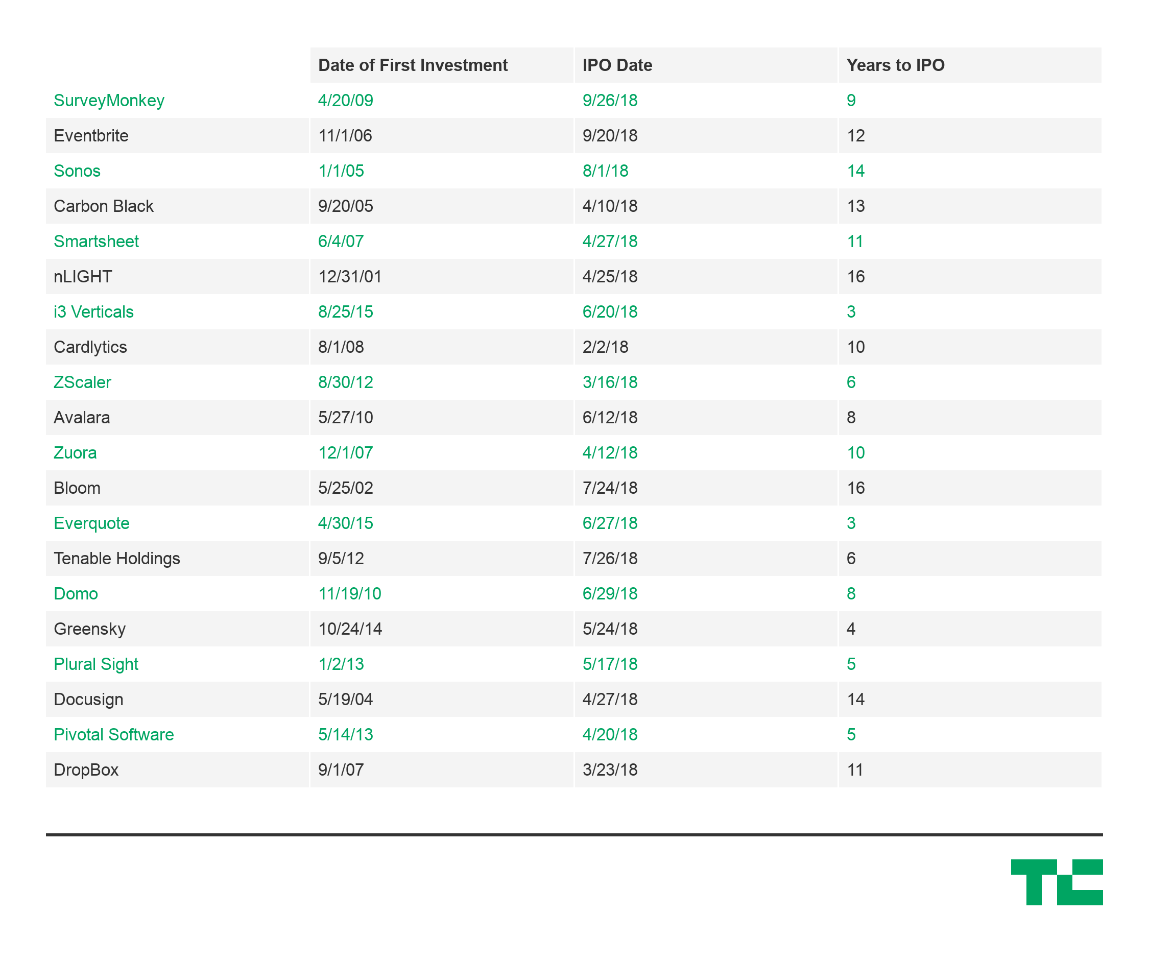 That’s less than half the average 10-year timeline for venture-backed US tech companies that went public in 2018, including Dropbox, Eventbrite, and DocuSign, which all IPO’d more than a decade after their initial investments.