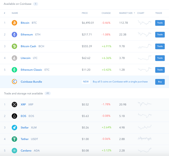 Beyond bundles, Coinbase is also launching a few educational cryptocurrency tools geared toward anyone still learning the ropes. The first of those tools is Coinbase Asset Pages, the company’s own CoinMarketCap-like database where anyone can view details about the top 50 coins by market cap, whether they’re listed by Coinbase or not.