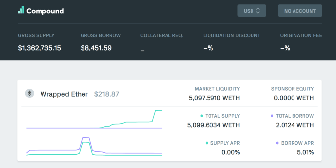 To make sure no one thinks they’re getting scammed, Compound is also releasing a transparency dashboard users can view to check up on all the assets moving through the protocol and see what Compound is earning. It charges 10 percent of what borrowers pay in interest, with the rest going to the lender. That margin is what attracted the $8.2 seed round for Compound that also included Polychain Capital and Bain Capital Ventures.