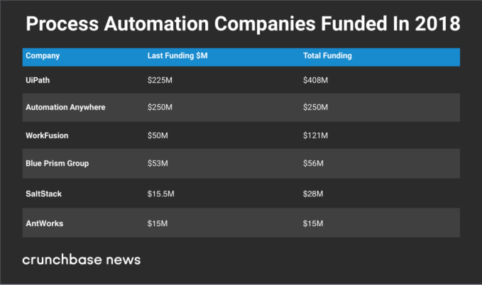 A Crunchbase News analysis of funding for startups and growth companies involved in robotic process automation indicates this has been a busy year overall for the space, with more than $600 million in aggregate investment across at least seven sizable deals.