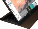 This is the HP Spectre Folio. Unveiled in an over-the-top press event in Manhattan today, which included such turns of phrase as “aluminum has become the gold standard,” the device is a convertible laptop with a leather case.