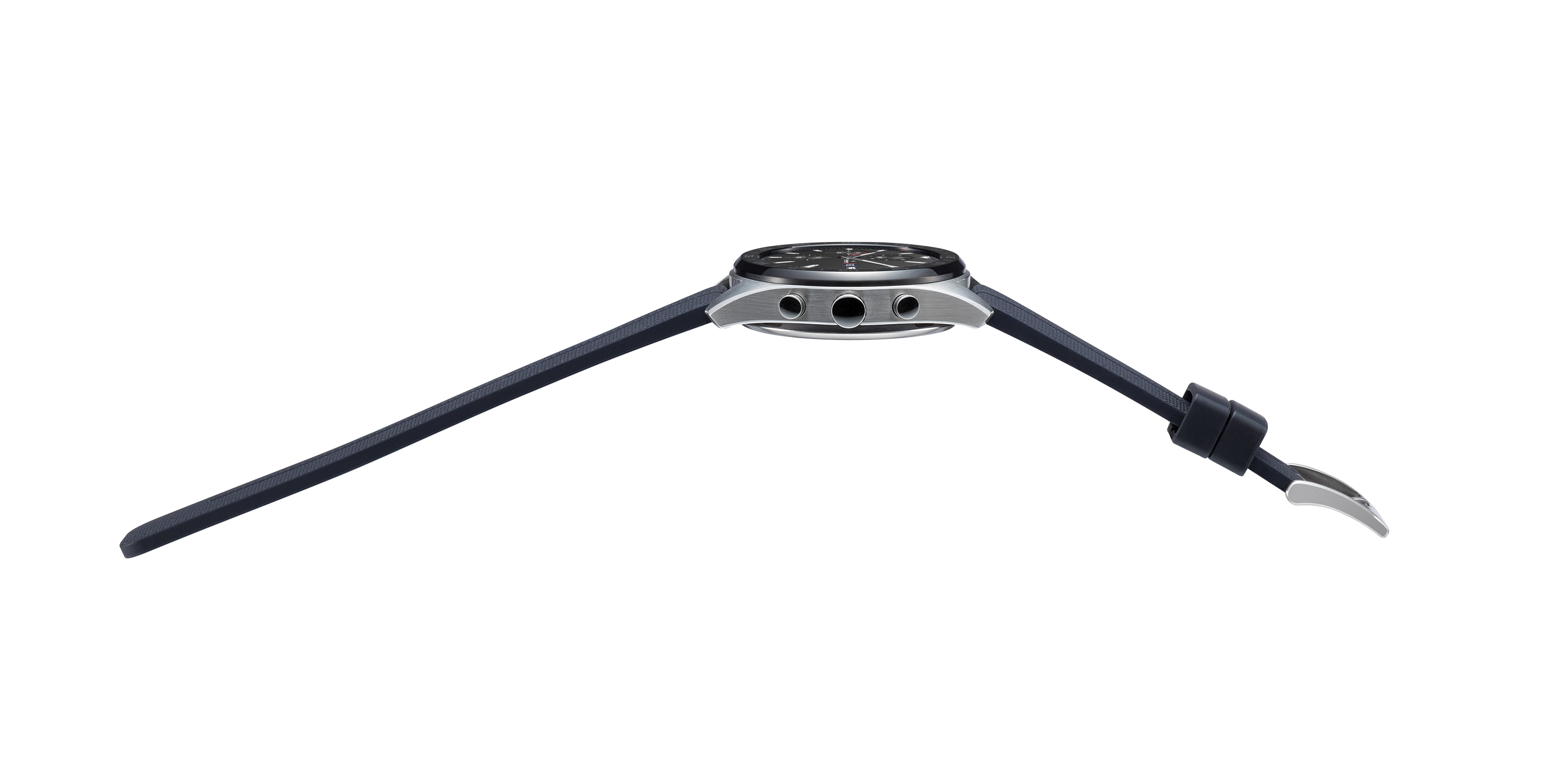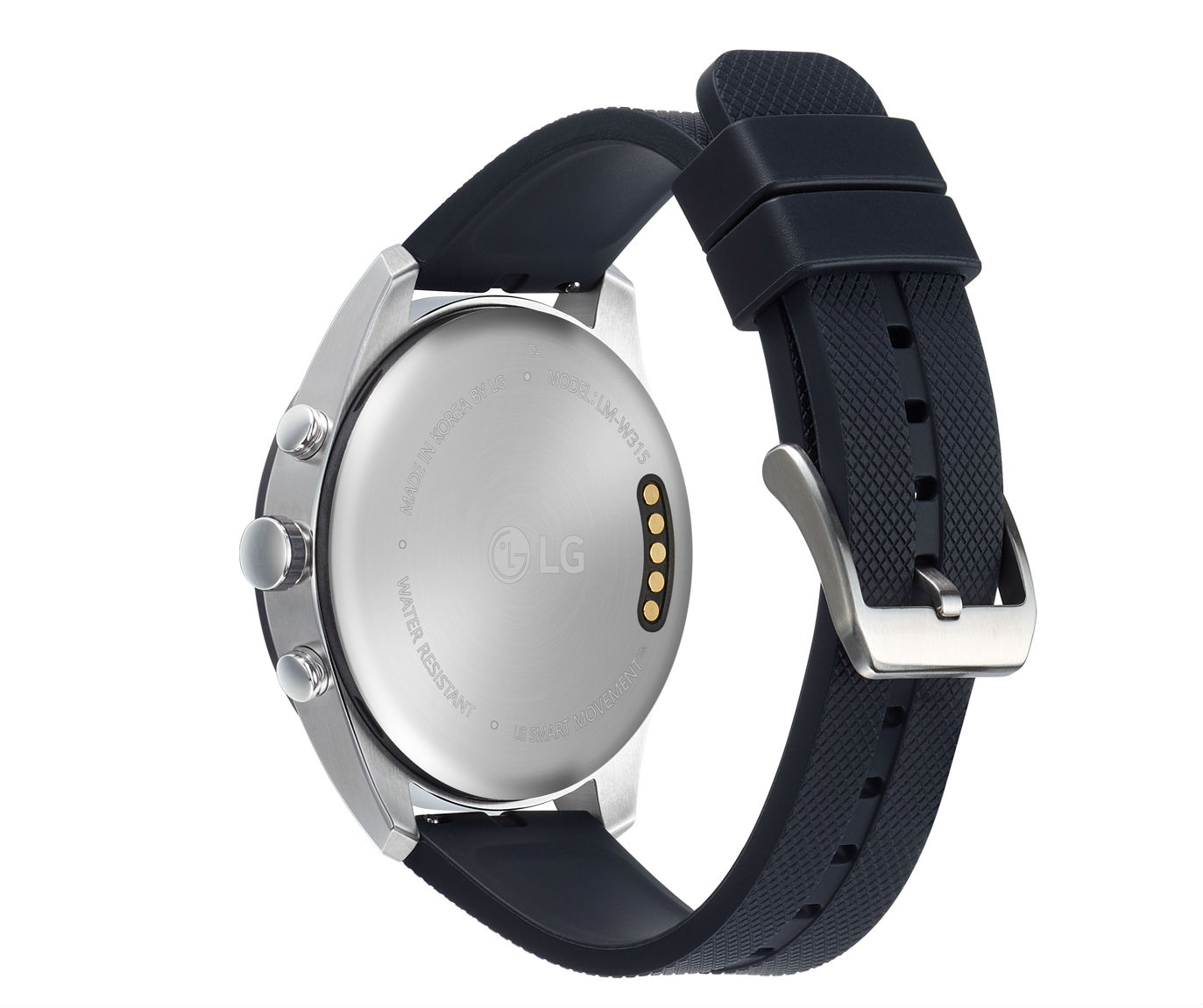 There’s a button on the side which, when pressed, move the hands out to 180 degrees. The text underneath then shifts up, so as to not be obscured by the physical parts. Also, the glass apparently lifts slightly when the hands realign. LG says the functionality was actually built into the latest version of Wear OS to accommodate LG’s Frankenstein watch.