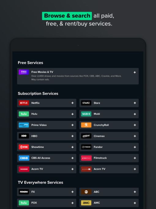 Finally, Reelgood’s update includes the addition of 50+ streaming services – that means there’s now support for more niche services like IndieFlix, FilmStruck, Shudder, Fandor, Crunchyroll, Mubi, AcornTV and Starz, among others.