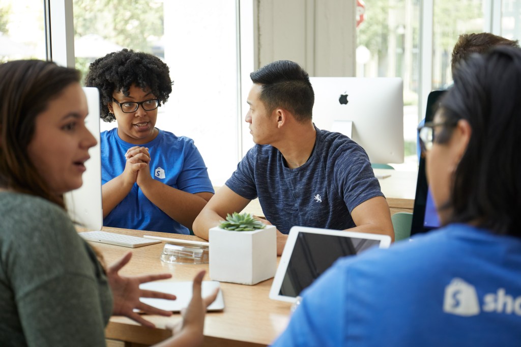 Like Apple, Shopify is staffing its store with experts on the platform who can walk new customers or would-be customers through whatever troubleshooting they may need, while also serving as a space to promote large and small vendors using its payment and supply management solution.