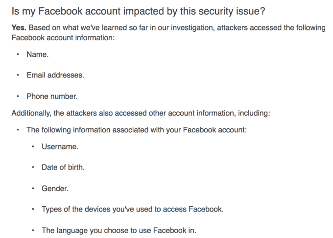 - You don’t necessarily have to change your Facebook password or credit card info, as there’s no evidence that data was accessed in the attack.