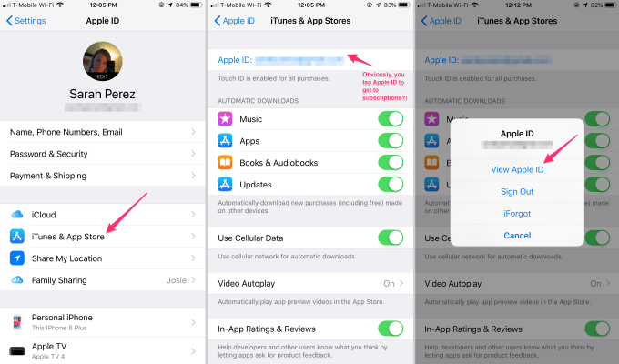 Above: Getting to subscriptions in the iPhone Settings (click images to view larger)