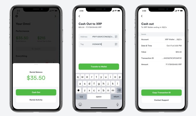 Now Omni has a way to get rid of some of its XRP. It’s beginning to let people get paid in the coin when they rent their stuff to fellow Omni users. Their balance of earnings is held in USD, but they can cash out to XRP at any time with no fee.