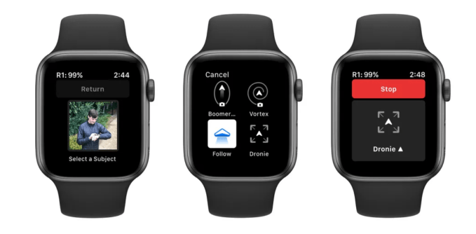 The Watch app has a very straight-forward UI and really gives you a lot of control over the drone. You can cycle through the list of skills, tapping modes like Lead, Follow and Orbit and putting the drone to work, but you can also interestingly identify people in the R1’s feed for it to follow, as well. It all works surprisingly well on the Watch, and feels like an unusually powerful set of features for the device.