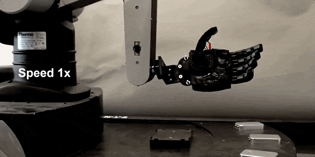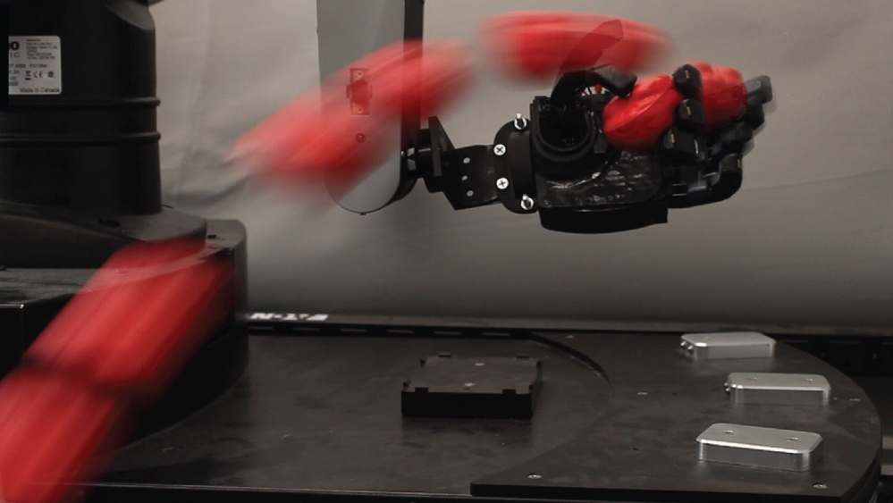 But in the ADEPT hand (adaptively driven via elastomeric passive transmissions — we’ll stick with the acronym) these spools have in their centers a flexible cylindrical core, the shape of which can be modified by tightening a separate “tendon” around it. When the tendon is loose, the core is wider and spins quickly, producing fast, responsive movement. When the tendon is tightened, the core is reduced in radius and correspondingly increases in torque while decreasing in speed.