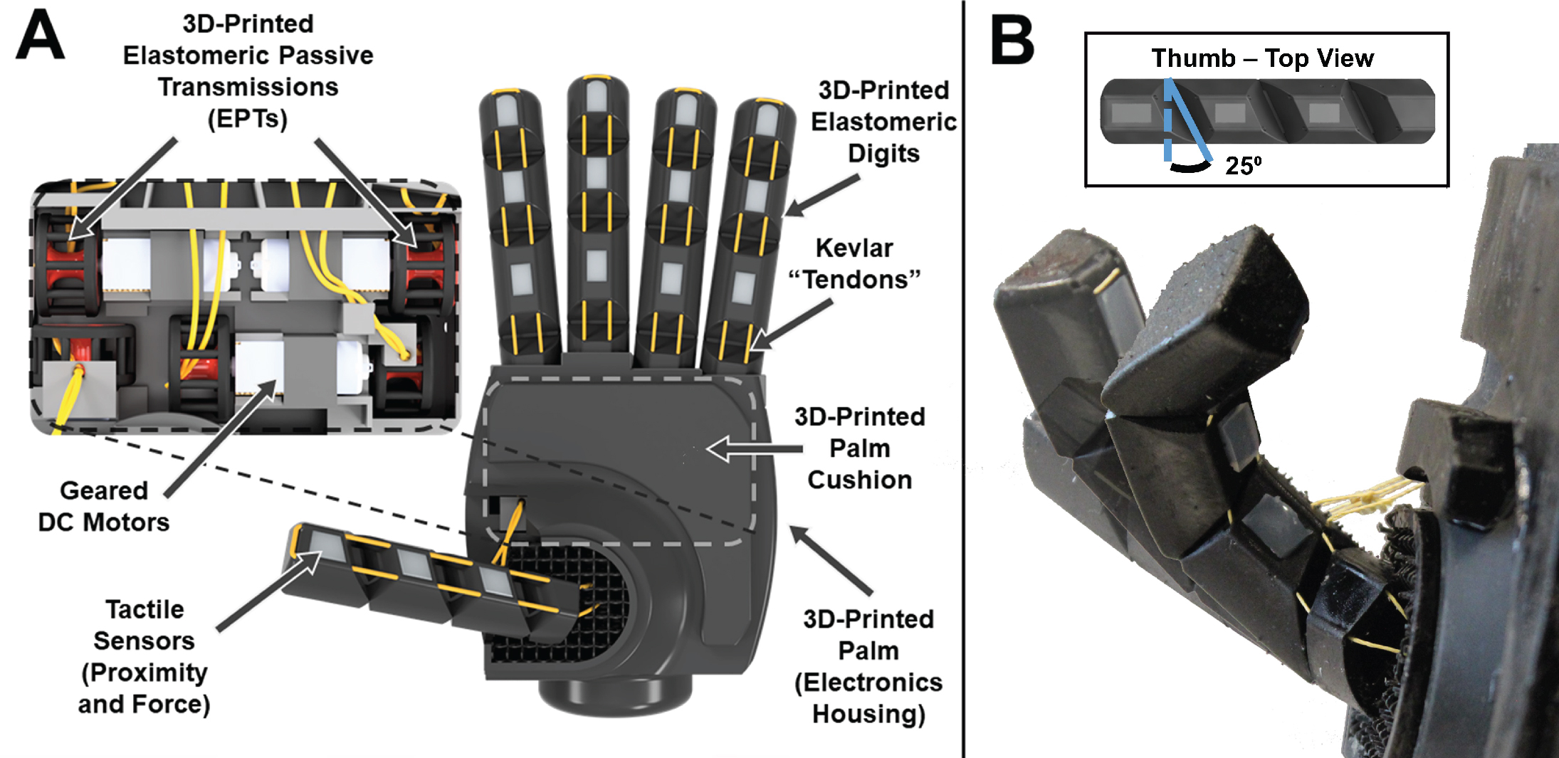 “The benefits of elastomeric transmission systems are that they can be 3D printed quickly (50 per hour), cheaply (<$1 per part), and in many compact form factors,” the researchers wrote. A whole hand could be built for less than $500, they estimate.