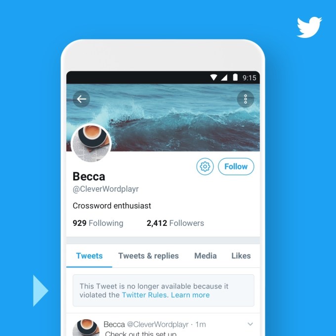 In addition, the company is also making it more transparent to users whether a deleted tweet was deleted by the user or because Twitter took an action. If the latter, these same informational notices will display.