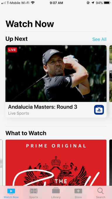 With the new PS Vue integration, you’ll see both its video-on-demand content and live sports in the TV app’s Watch Now and Up Next sections. Below are some examples of what that looks like.