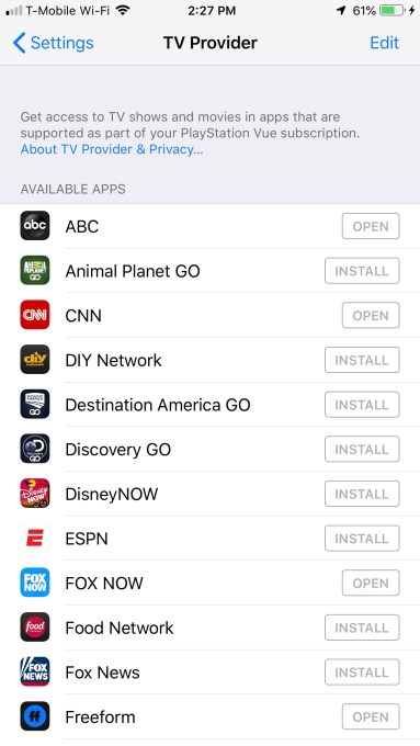 When a TV provider is connected, the TV provider settings page will then show you the “available apps” that work with that provider. These the “TV Everywhere”-enabled applications – meaning, apps that require a pay TV login for authentication. You pick which ones you’d like to install from the list.