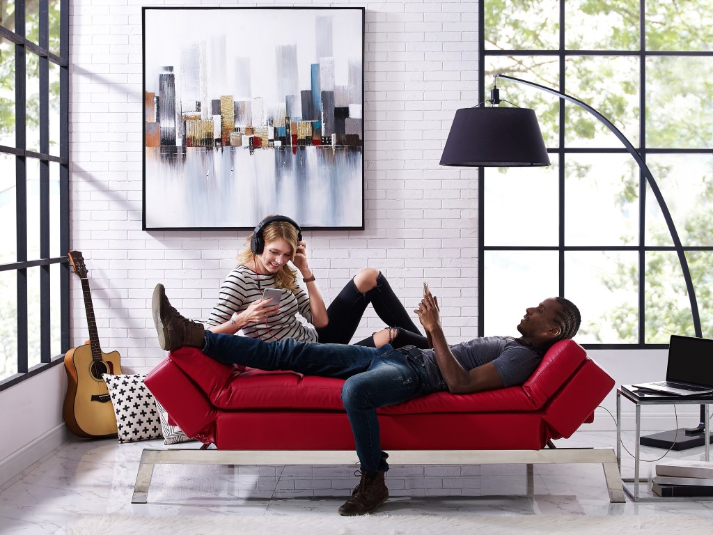 I tested one of the couches and can report that it would make a great startup-office seat. The styling, the firmness, and the clever charging ports mean that you can easily make your visitors feel powered-up and comfortable. As a home couch, however, I would recommend trying before you buy. First, at 6.5 feet long, there isn’t much room on the couch for more than two people let alone a small family. Further, the two reclining options are not conducive to many traditional couch activities except, perhaps, for the aftermath of Netflix and chill. The two sides of the back of the couch move from upright to reclined. When upright it is set at almost at 90 degrees – a TV lounging nightmare – and when slightly reclined you fall into a napping position. There is no “just right” with this couch for the home user.