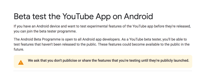 But after asking Google for more information on the program, the company updated its help documentation to remove the wording about “experimental features.” It now says testers will only help YouTube to stabilize its app.