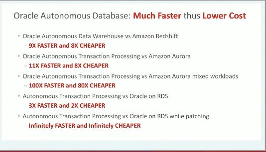 He rolled out a slide with all the facts and figures in case you doubted it. He wrapped it up in a neat little marketing package for the world to see. Oracle has an autonomous self-healing database. AWS? Nope. That much he’s right.