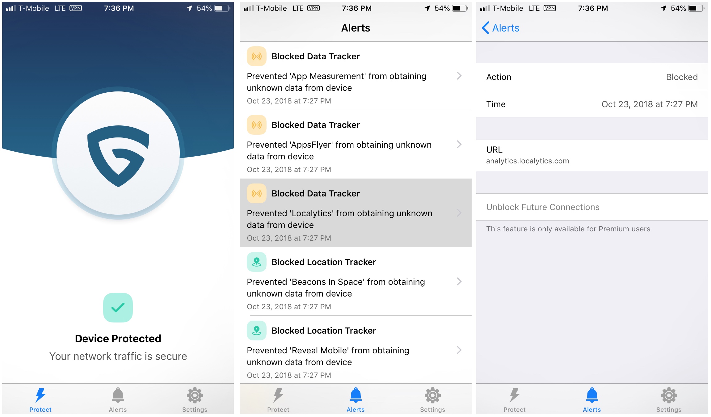 At its heart, the Guardian Mobile Firewall — currently in a closed beta — funnels all of an iPhone or iPad’s internet traffic through an encrypted virtual private network (VPN) tunnel to Guardian’s servers, outsourcing all of the filtering and enforcement to the cloud to help reduce performance issues on the device’s battery. It means the Guardian app can near-instantly spot if another app is secretly sending a device’s tracking data to a tracking firm, warning the user or giving the option to stop it in its tracks. The aim isn’t to prevent a potentially dodgy app from working properly, but to give users’ awareness and choice over what data leaves their device.
