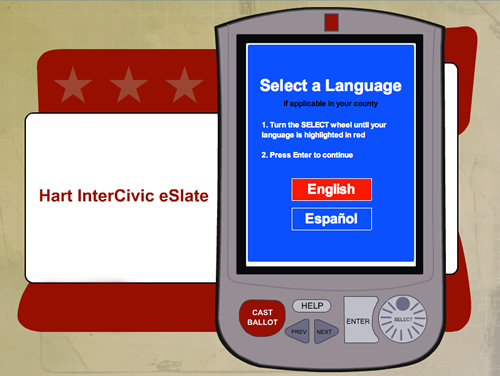 “Specifically, the Hart eSlate system uses a keyboard with an “Enter” button and a selection wheel button. The “Enter” button on a Hart eSlate selects a voter’s choice. The selection wheel button on a Hart eSlate allows the voter to move up and down the ballot. It is important when voting on a Hart eSlate machine for the voter to use one button or the other and not both simultaneously, and for the voter to not hit the “Enter” button or use the selection wheel button until a page is fully rendered.”
