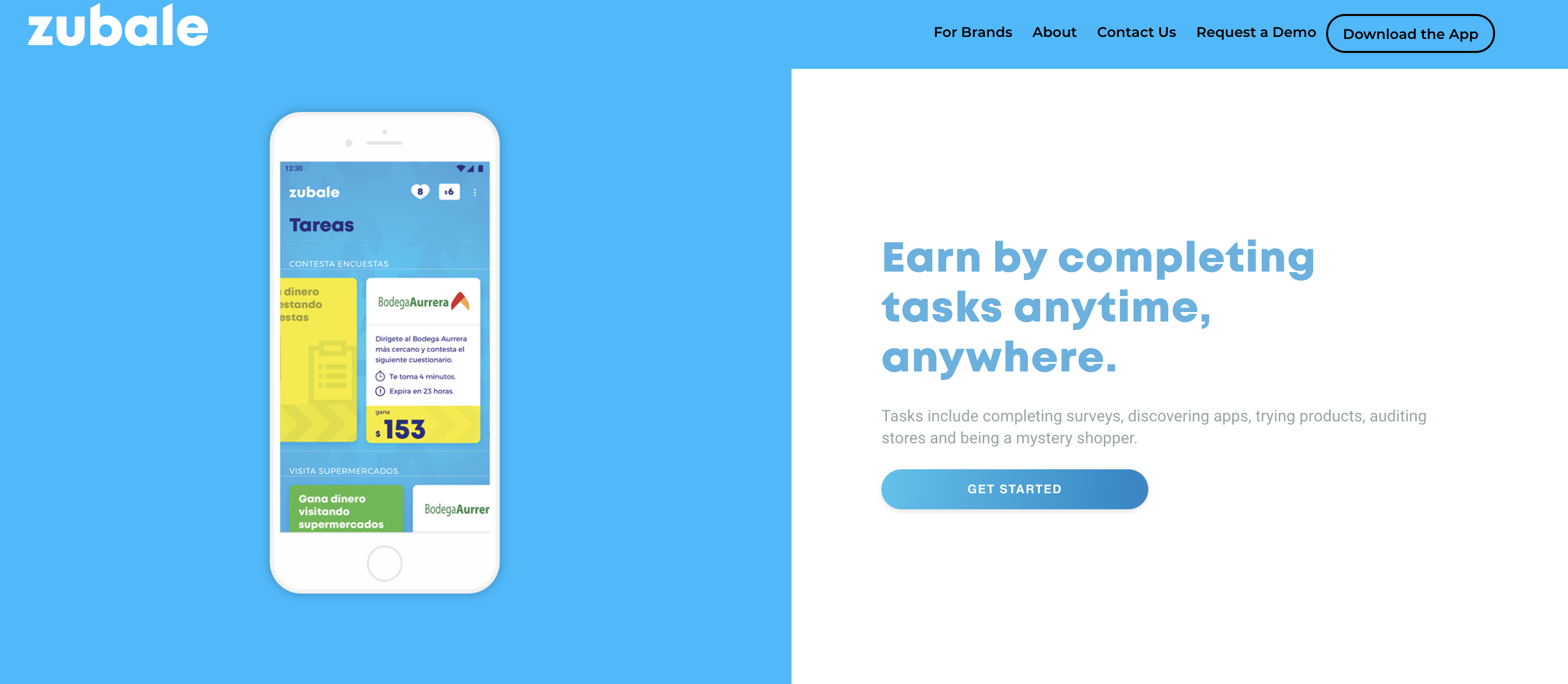 Describes itself as: Zubale connects companies directly with consumers on their smartphones to crowdsource multiple digital tasks in exchange for rewards. Companies can crowdsource tasks like in-store audits, product trial activations and market research studies, and receive real-time intelligence from consumers to make faster and more confident decisions. Consumers complete tasks and earn mobile phone credit and other digital rewards that they can redeem through making online purchases.