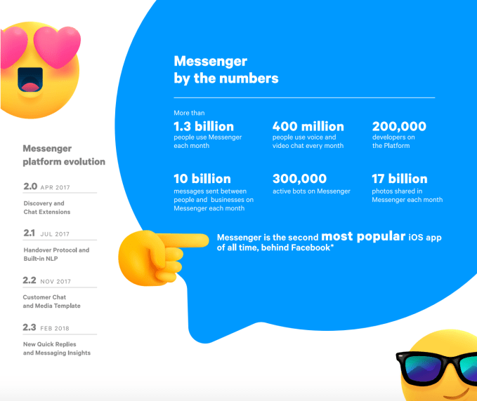 Across Facebook’s other products, Zuckerberg noted that 800 million people now use Marketplace, its Jobs feature have helped people find 1 million jobs, and its birthday fundraisers have raised $300 million alone this year. But it will be teaching advertisers how to effectively create sponsored messages and Stories ads that will define whether Facebook’s revenue keeps growing.