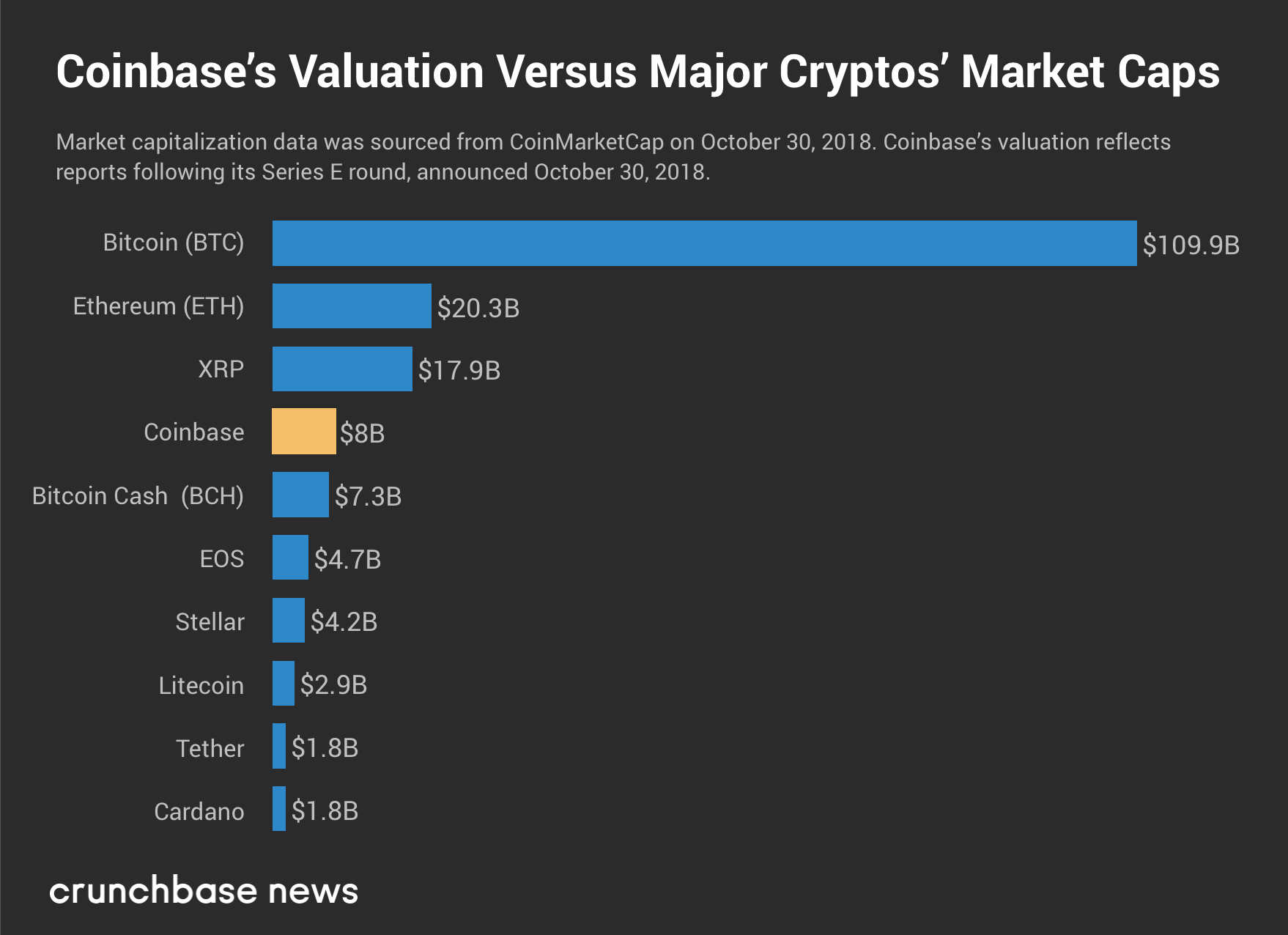 With its shiny new $8 billion valuation, Coinbase is now worth more than all but the top three cryptocurrencies that trade on the platform.