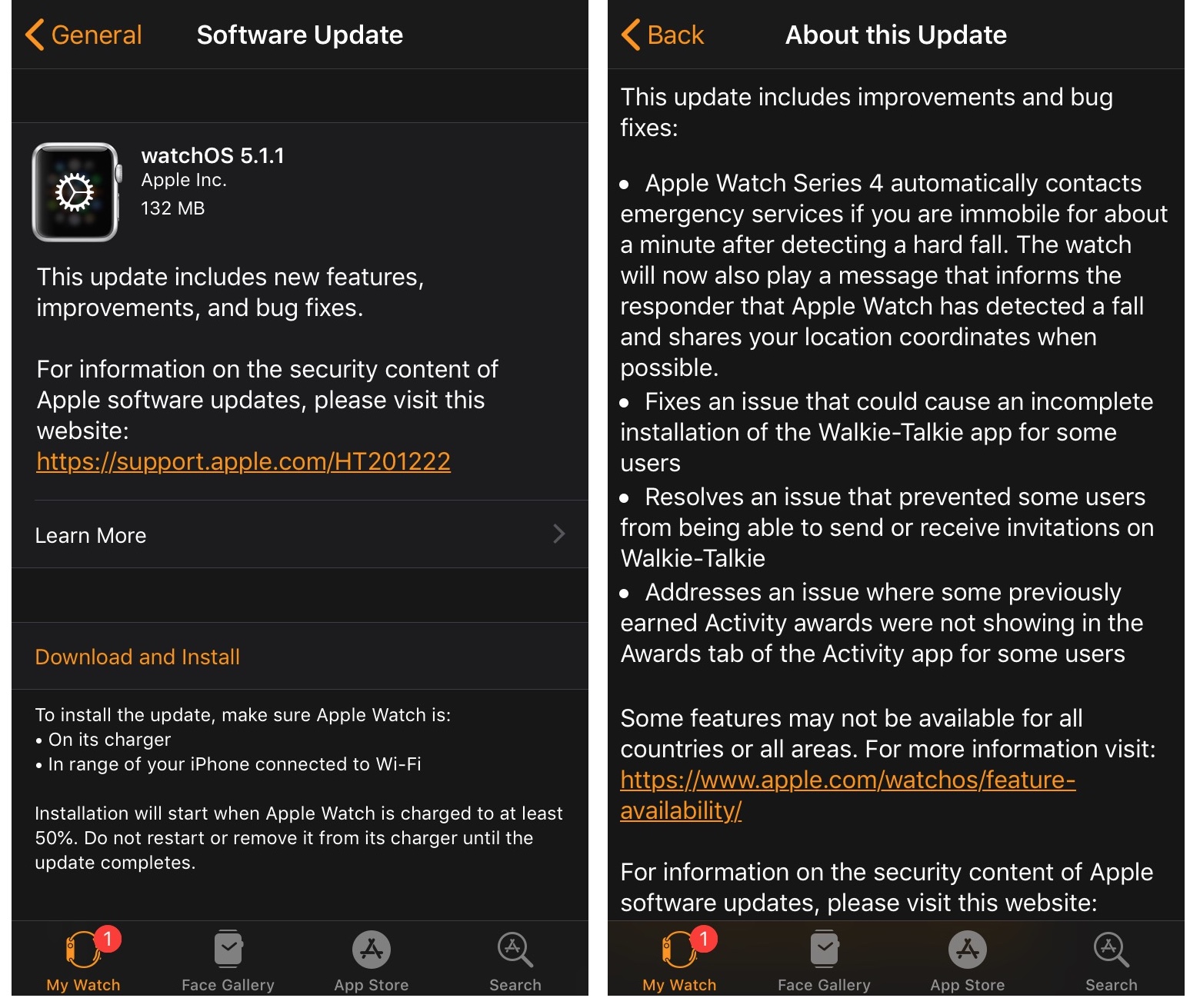 watchOS 5.1 initially went out Tuesday alongside iOS 12.1 but was quickly withdrawn after some complained that their Apple Watch failed to load after installing the software update. Apple confirmed the buggy update affected a “small number” of customers — without elaborating — but that, “any customers impacted should contact AppleCare, but no action is required if the update installed successfully.”