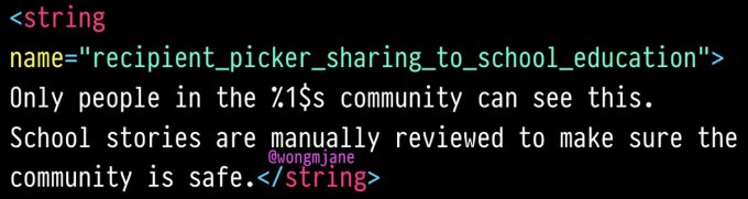 Instagram is considering offering collaborative School Stories that only a certain school’s students can see or contribute to. And to make sure these Stories wouldn’t become bullying cesspools, Instagram’s code shows a warning that “School stories are manually reviewed to make sure the community is safe.” School Stories could create a fun space for kids to share with their peers beyond the prying eyes of their parents or strangers, though they could also exacerbate teen culture issues around envy and exclusionary social scenes.