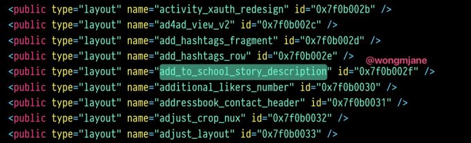The code was first discovered by TechCrunch’s top tipster Jane Manchun Wong. Instagram declined to comment on the record regarding the code, though previous discoveries from its code that it also “no-comment’ed” — such as video calling and Nametags — went on to officially launch. But typically, Instagram confirms if it’s internally or externally testing features we spot, so if it ever decides to actually launch School Stories, it might not be for months or longer.