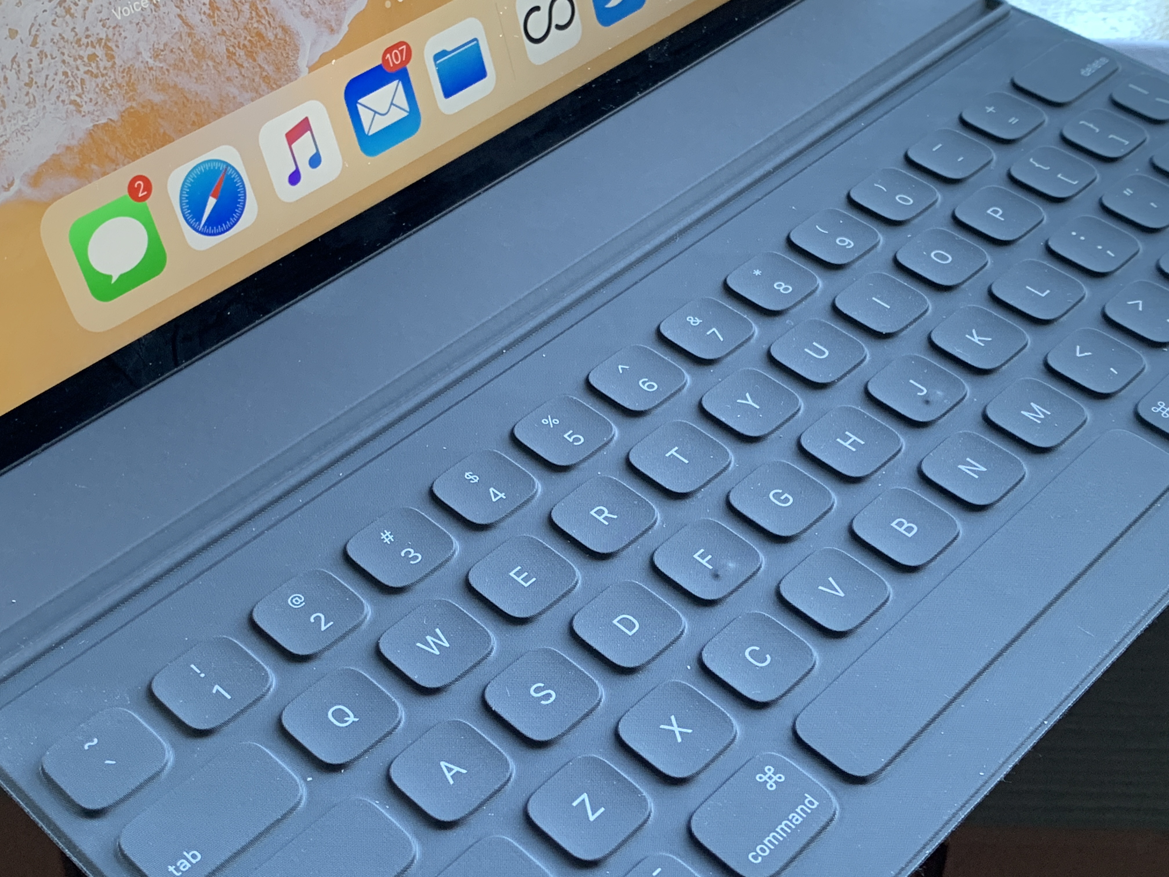 The general effect here is that the Smart Keyboard is much, much more stable than previous generations and, I’m happy to report, is approved for lap use. It’s still not going to be quite as stable as a laptop, but you can absolutely slap this on your knees on a train or plane and get work done. That was pretty much impossible with its floppier predecessor.
