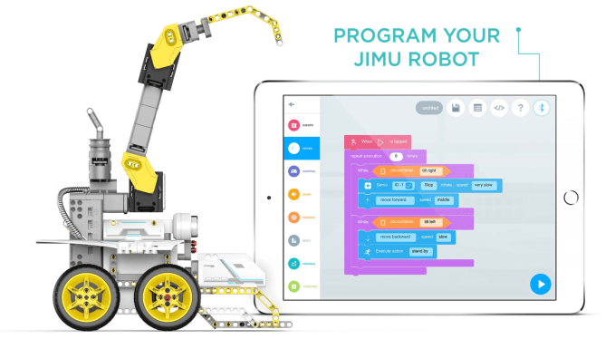 Description: More snap-together, codable robot trucks that kids get to build and control. These can be programmed either via posing and recording, or using Ubtech’s drag-and-drop, block-based Blockly coding program. The Shenzhen-based company, which has been in the STEM game for several years, offers a range of other kits in the same Jimu kit series — such as this similarly priced UnicornBot and its classic MeeBot Kit, which can be expanded via the newer Animal Add-on Kit