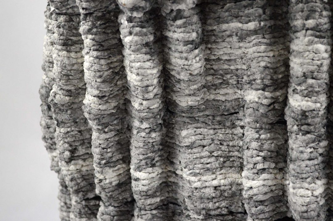 According to 3DPrint.com, Holthuis was searching for material that wouldn’t create waste or increase plastic pollution. He settled on ground-up paper. By extruding the wet paper he is able to create a thick bead of pulp that he can then build up to create decorative objects.