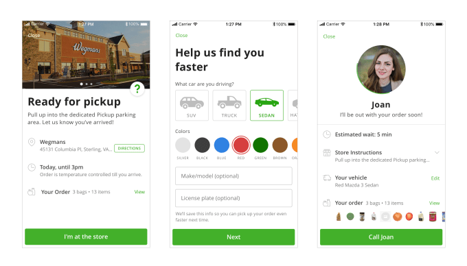 Then, once they arrive, Instacart says one of its shoppers or a retailer employee will bring the groceries out to their car. Assuming the car has been described accurately enough in the app…