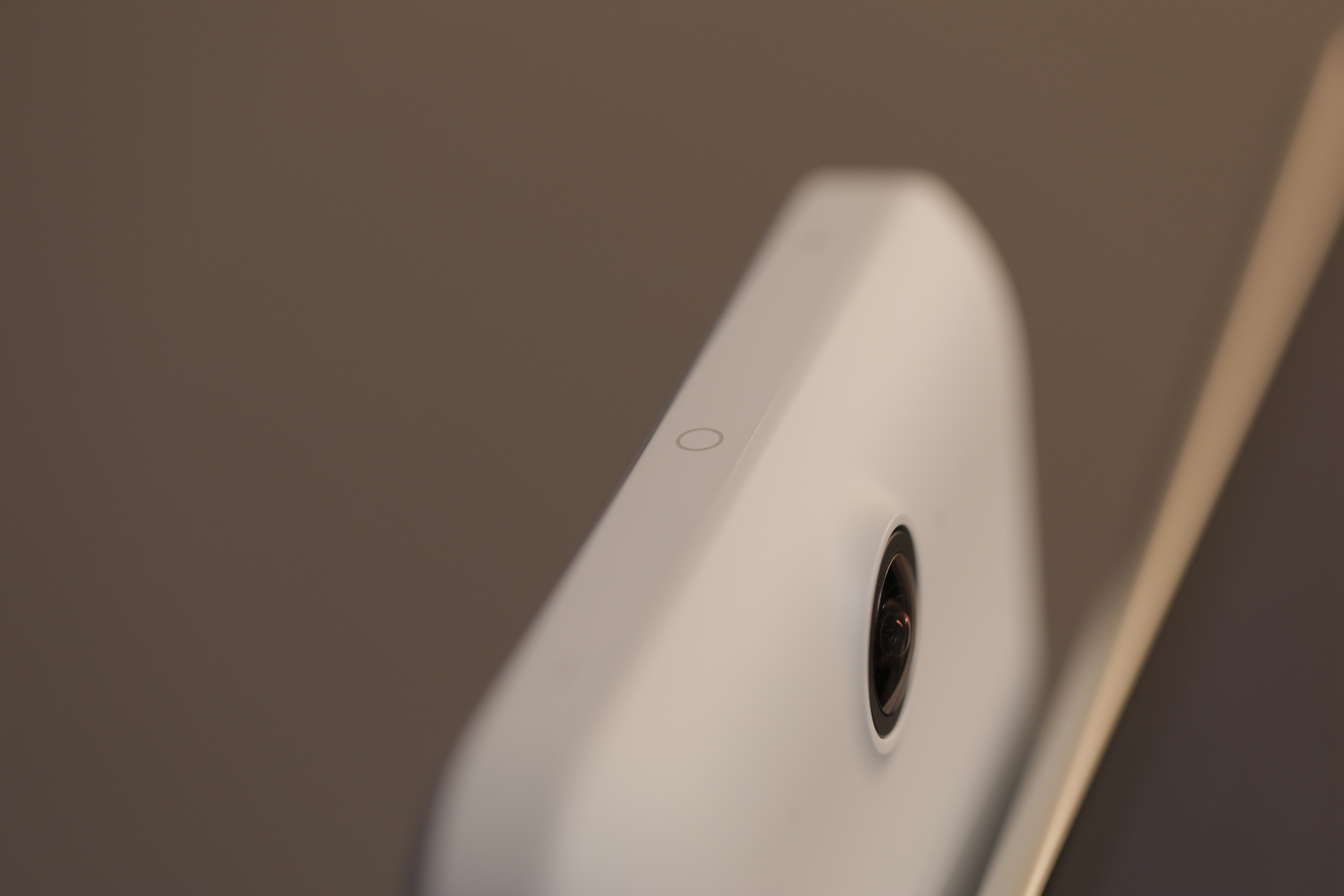 The all-important camera is positioned an inch above the screen, like an unblinking eye of Sauron. The 12-megapixel camera can do 5x zoom and capture movement within a 140-degree range. The four-mic array flanks the lens on either side, doing double duty of listening to commands and noise canceling during chats.