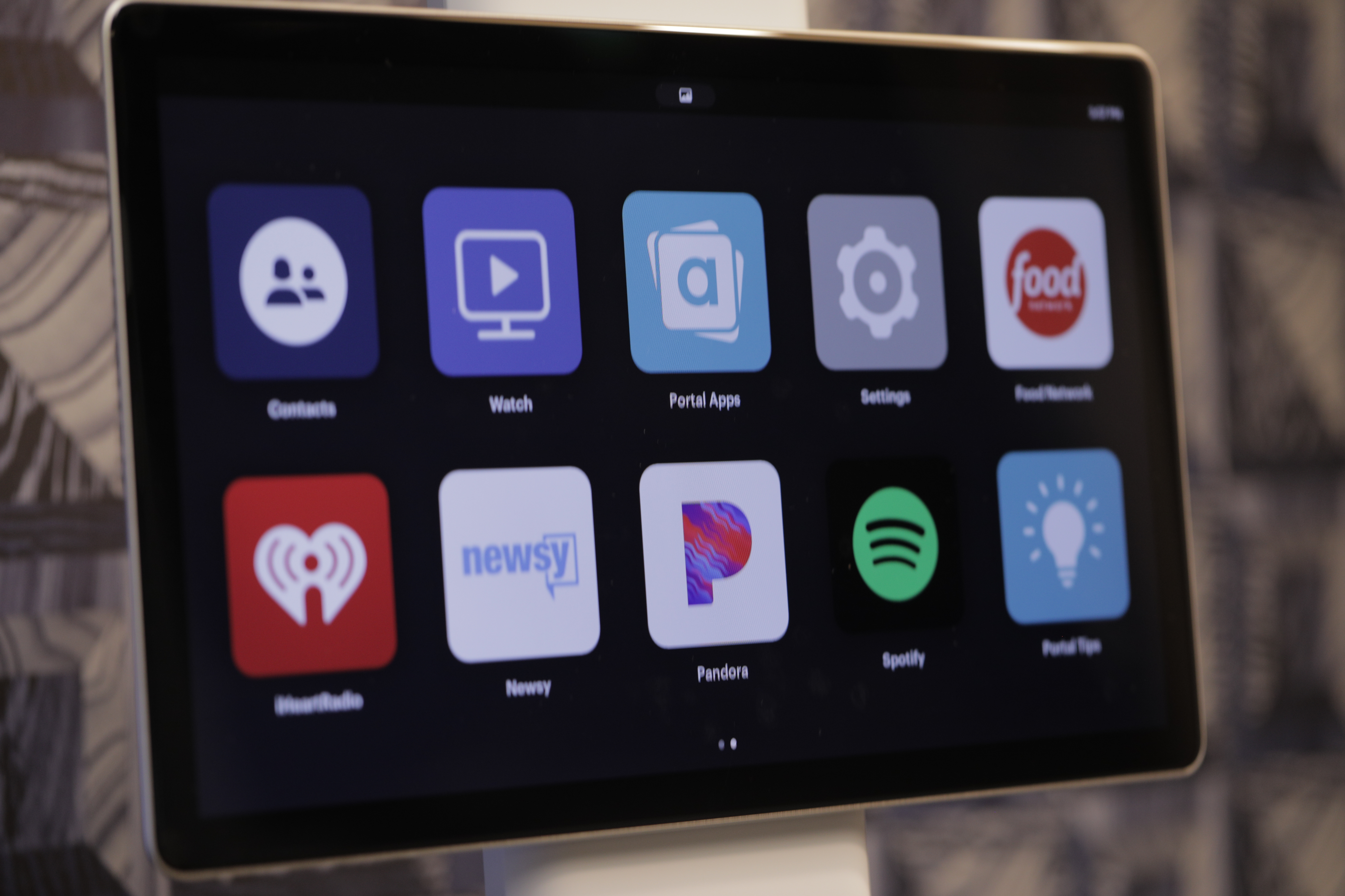Swipe left and you get a screen full of large icons. From here you can click into Facebook videos or pick from your Portal apps — Food Network, iHeartRadio, Newsy, Pandora and Spotify by default.